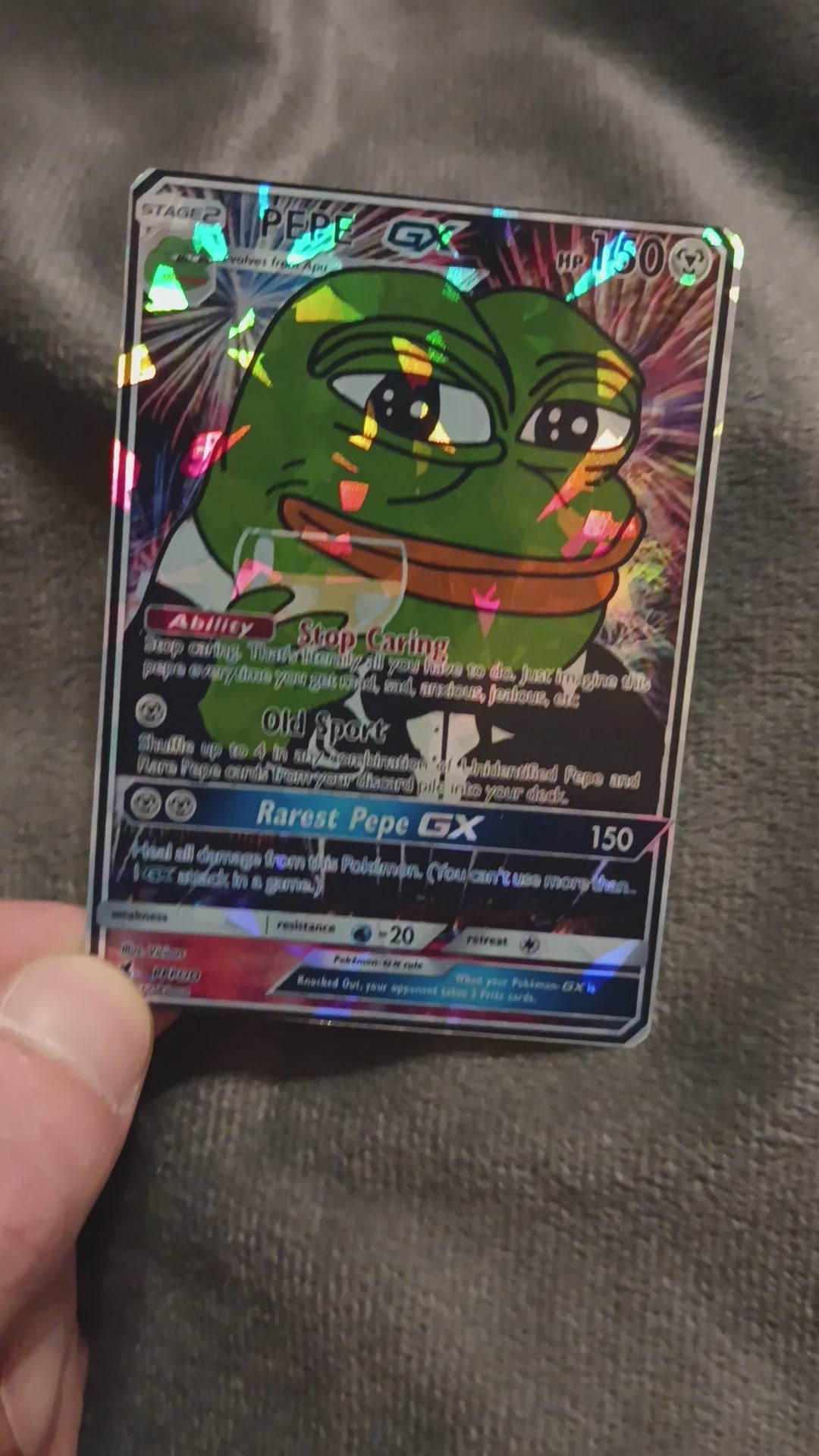 Make your friends and rivals green with envy with our exclusive Pepe the frog - Cheers Pokemon Card. Handcrafted for unbeatable power and one-of-a-kind style. Catch 'em all and raise your game!